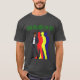 El color es muy bonito al natural, como la foto. El tejido es suave y de buena calidad. Sin defectos en el tintado, ni hilos sueltos o descosidos. Bien la impresión. Los bordes de las letras y el dibujo son nítidos, y el color contrasta muy bien con el de la camiseta.