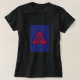 Camiseta Silueta de damasco rojo floral sobre azul marino