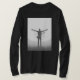 Este llavero circular de aluminio muestra una impresionante silueta de músico en blanco y negro con brazos extendidos y un efecto único de estilo glitch.
