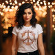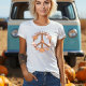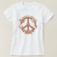 La Vieja Camiseta del Símbolo de Paz y Amor. © Tees & Sweats at Zazzle. Este tee vintage tiene un símbolo de paz retro con flores a su alrededor y las palabras Paz y Amor en la parte superior.