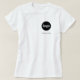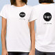 Simple logo and custom text business crest and back printed t-shirt. Replace the logo and text on the front and back with your own to customize. Wear them yourself, give them to your staff, employees and co-workers, sell them to customers and clients or give them away as promotional merch to inspire customer loyalty.