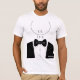 Camisa simple de novio negro y blanco con monograma personalizable con un retrato abstracto de una figura de novio vestido de esmoquin que tiene las palabras "el novio". Puede modificar y eliminar palabras para agregar los nombres o iniciales de los padrinos para hacer diseños coincidentes para los padrinos. Este diseño de camisa funciona muy bien para fotos de compromiso informales o una despedida de soltero. Diseño por ©Ms_Jade.