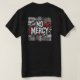 Aquí hay un audaz diseño de ropa de calle con la frase "No a la piedad" en un tipo de letra con grafitis retorcido y con goteos de pintura en rojo y blanco. El oscuro fondo de pared de hormigón rayado, los efectos de los destellos y los caóticos pincelados crean una estética cruda y rebelde. 💥 🛹 👕