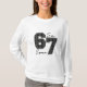 Embrace the viral sensation with this "Six Seven" (67) pop culture T-shirt. Featuring the iconic number 67 filled with a trendy star pattern, this shirt captures the playful, nonsensical "brainrot" humor and insider slang popularized by Gen Alpha, TikTok, and basketball culture. It's the perfect statement piece for anyone who's in on the joke or just loves a cool graphic tee with a modern, sporty vibe. Show off your awareness of the latest memes and internet trends!