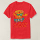 El color es muy bonito al natural, como la foto. El tejido es suave y de buena calidad. Sin defectos en el tintado, ni hilos sueltos o descosidos. Bien la impresión. Los bordes de las letras y el dibujo son nítidos, y el color contrasta muy bien con el de la camiseta.