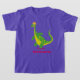 Ein T-Shirt mit einem Cartoon Dino auf einem Skateboard. Das ist der coole Skatosaurus!
