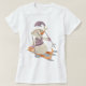 Un hombre de nieve esquiando con esquís, postes y un gorra. Este diseño se ve realmente efectivo en esta camiseta femenina