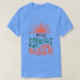 El color es muy bonito al natural, como la foto. El tejido es suave y de buena calidad. Sin defectos en el tintado, ni hilos sueltos o descosidos. Bien la impresión. Los bordes de las letras y el dibujo son nítidos, y el color contrasta muy bien con el de la camiseta.