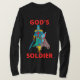 Esta manga larga tiene las palabras Soldado de Dios en letra negrita más letras rojas con un soldado con armadura completa sosteniendo una espada más un escudo en el centro con un tema basado en la fe. Esta camiseta de manga larga es cómoda, casual y suelta, hecha de algodón 100% pre-reducido, con el fondo de la aguja doble y las mangas para mayor durabilidad, tiene una imagen más pequeña de casamiento en la parte posterior que nuestros tees encajan y lleva bien en todos y cada uno.