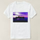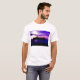 Un solo árbol se opone solamente en una masa minúscula de la tierra en el medio de un océano púrpura a un cielo púrpura/rosado. Un paisaje digital original titulado "soledad"