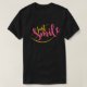 El color es muy bonito al natural, como la foto. El tejido es suave y de buena calidad. Sin defectos en el tintado, ni hilos sueltos o descosidos. Bien la impresión. Los bordes de las letras y el dibujo son nítidos, y el color contrasta muy bien con el de la camiseta.