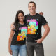 El color es muy bonito al natural, como la foto. El tejido es suave y de buena calidad. Sin defectos en el tintado, ni hilos sueltos o descosidos. Bien la impresión. Los bordes de las letras y el dibujo son nítidos, y el color contrasta muy bien con el de la camiseta.