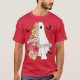 El color es muy bonito al natural, como la foto. El tejido es suave y de buena calidad. Sin defectos en el tintado, ni hilos sueltos o descosidos. Bien la impresión. Los bordes de las letras y el dibujo son nítidos, y el color contrasta muy bien con el de la camiseta.