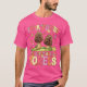 El color es muy bonito al natural, como la foto. El tejido es suave y de buena calidad. Sin defectos en el tintado, ni hilos sueltos o descosidos. Bien la impresión. Los bordes de las letras y el dibujo son nítidos, y el color contrasta muy bien con el de la camiseta.