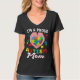 Camiseta con cuello en V de mujer, Negro, XL de adulto