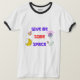Esta camiseta presenta un diseño atrevido y colorido con la frase ‘DÉJENME ALGO DE ESPACIO’. El diseño incluye imágenes relacionadas con el espacio, como cohetes, planetas, casco astronauta y estrellas. El tema del diseño es lúdico y se centra en la exploración y astronomía del espacio.