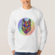 A vibrant geometric wolf design bursting with bold colors and sharp shapes. Set against a soft gradient circle, this modern and artistic graphic brings a powerful, eye-catching look to any T-shirt. It's a vibrant and color full abstract pattern design create a new look to your wardrobe