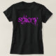 This tee says Spicey in bright pink grungy lettering.