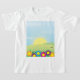 Un paisaje pradera primaveral con flores y una abeja. Este diseño parece realmente efectivo en esta camiseta de Chicas