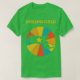 El color es muy bonito al natural, como la foto. El tejido es suave y de buena calidad. Sin defectos en el tintado, ni hilos sueltos o descosidos. Bien la impresión. Los bordes de las letras y el dibujo son nítidos, y el color contrasta muy bien con el de la camiseta.