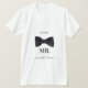 Un diseño elegante de tema de boda en blanco y negro perfecto para recién casados y su cortejo nupcial. La camiseta está diseñada en blanco y negro con una elegante corbata negra para el "Sr." y un hermoso diamante brillante para la "Sra.". La fecha establecida se encuentra en la parte superior que se puede personalizar a la fecha de su boda. Se utiliza una fuente de escritura elegante para los nombres de la novia y el novio ubicados en la parte inferior. Camisetas de cortejo nupcial a juego disponibles para con títulos como dama de honor, madre de la novia, madre del novio, dama de honor, niña de las flores, etc. Personalice el texto y hágalo suyo.