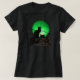 Una silueta del gato negro de Théophile Steinlen para el club Le Chat Noir en un ambiente moderno para el Día de San Patricio, donde se ve al gato con ojos verdes, una luna llena verde, una vid con rocas de champán y una olla de oro.
