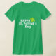 Camiseta verde del día de San Patricio con un shamrock verde. Texto del día de White Happy St. Patrick. Para su fiesta del día de San Patricio, desfile o un regalo perfecto.