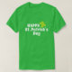 Camiseta verde del día de San Patricio con un shamrock verde. Texto del día de White Happy St. Patrick. Para su fiesta del día de San Patricio, desfile o un regalo perfecto.