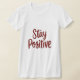 Stay Positive" é uma mensagem motivacional que incentiva a manutenção de uma mentalidade otimista e uma atitude esperançosa, mesmo diante de desafios e adversidades. Esta frase sugere que a positividade pode ser uma poderosa ferramenta para enfrentar dificuldades, promovendo resiliência e bem-estar emocional. Ao encorajar as pessoas a focarem no lado positivo das situações e a manterem a fé em resultados favoráveis, "Stay Positive" promove uma perspectiva que pode melhorar a motivação, aumentar a produtividade e fortalecer a capacidade de lidar com o estresse. É uma lembrança simples, mas eficaz, de que manter uma visão otimista pode fazer uma diferença significativa na jornada pessoal e profissional.