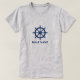 Su nombre o nombre de barco personalizado en la rueda de los barcos náuticos azules de la marina en la camiseta de las damas griegas.