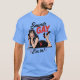 El color es muy bonito al natural, como la foto. El tejido es suave y de buena calidad. Sin defectos en el tintado, ni hilos sueltos o descosidos. Bien la impresión. Los bordes de las letras y el dibujo son nítidos, y el color contrasta muy bien con el de la camiseta.