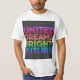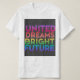 El diseño de la camiseta muestra el texto "El futuro brillante de los sueños unidos" en un vibrante gradiente arcoiris, empezando por el púrpura y terminando en rosa. El texto se coloca sobre un fondo negro y se muestra en una fuente geométrica moderna. El diseño transmite un mensaje de esperanza, unidad y optimismo, con los colores que simbolizan la diversidad y la inclusión.