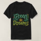 Este diseño de camisetas muestra la frase "Sueños verdes" en una mezcla de verdes y azules. Los colores evocan un bosque exuberante con un cielo despejado, perfecto para el soñador ecológico.