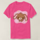 El color es muy bonito al natural, como la foto. El tejido es suave y de buena calidad. Sin defectos en el tintado, ni hilos sueltos o descosidos. Bien la impresión. Los bordes de las letras y el dibujo son nítidos, y el color contrasta muy bien con el de la camiseta.