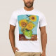 Sunflowers (1888) Vincent van Gogh. Todavía la vida en un fondo azul. Un ramo luminoso de flores de girasol se levanta en un jarrón. Reproducción de obras famosas de imágenes artísticas de dominio público.