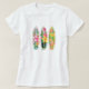 Surfboards con motivos florales de Hawái adornan una camiseta.