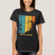 El diseño de esta playa de surf tiene un vibrante fondo vintage, la silueta de un surfista que monta una ola, palmeras y el texto "Rock Batts, Barbados".