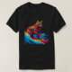 El color es muy bonito al natural, como la foto. El tejido es suave y de buena calidad. Sin defectos en el tintado, ni hilos sueltos o descosidos. Bien la impresión. Los bordes de las letras y el dibujo son nítidos, y el color contrasta muy bien con el de la camiseta.