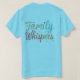 El diseño de la camiseta "Family Whispers" incluye la frase en letras vibrantes y multicolores. Los colores están dispuestos en un efecto de gradiente, lo que crea una sensación de profundidad y movimiento. La estética general es lúdica y llamativa, lo que refleja la calidez y la conexión con la familia. El diseño es perfecto para cualquiera que desee expresar su amor y aprecio por sus seres queridos.