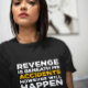 Aprovecha el arte de los sutiles rebotes con nuestro "Sutil Tee de Vendetta". Perfecto para los que prefieren dejar que el universo hable, esta camisa audazmente afirma: "La venganza está por debajo de mí. Sin Embargo, Ocurrirán Accidentes". Es la última mezcla de humor negro y una actitud indiferente hacia los pequeños dramas de la vida. Hecho para los que pueden reír frente a la adversidad y prefieren un enfoque más 'accidental' a la repetición. Usa, haz una declaración y mira cómo el universo conspira a tu favor.