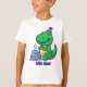 Un lindo y pequeño dinosaurio T-Rex está sonriendo y usando un gorra de cumpleaños mientras se sienta con su torta de 2º cumpleaños. ¡Un regalo adorable para tu hijo de dos años!