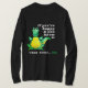 Un adorable T-Rex verde y amarillo no puede aplaudir porque sus brazos son muy cortos. ¡Ay, perdón pequeño dinosaurio!