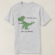 T-Shirt mit einem lustigen T-Rex Cartoon. T-Rex mit einem Hut auf dem Kopf beim steppen. Text: "T-Rex tiny arms loves tap dancing"