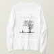 Un caprichoso diseño de camisetas con una silueta serena de un hombre parado bajo un árbol extenuante, contra un fondo blanco de ensueño. Combinando gradientes suaves y texturas sutiles, evoca calma e introspección. Perfecto para los amantes de los diseños artísticos y serenos.