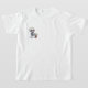 A heartwarming and cheerful cartoon design featuring a friendly skeleton gardening. This adorable character is depicted holding a blue watering can, carefully tending to a brown pot filled with blooming white daisies. With a wide, enthusiastic smile and big expressive eyes, the artwork captures a sweet and wholesome moment of nature care in a clean kawaii style.