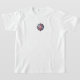 El color es muy bonito al natural, como la foto. El tejido es suave y de buena calidad. Sin defectos en el tintado, ni hilos sueltos o descosidos. Bien la impresión. Los bordes de las letras y el dibujo son nítidos, y el color contrasta muy bien con el de la camiseta.