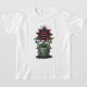A towering nightmare flower rises from a cracked, sickly green flowerpot, its twisted vines coiling like serpents around the base. The central blossom is a deep, bruised crimson, shaped into jagged petals that frame a skull-like face with blazing red eyes and a gaping mouth full of long, needle‑sharp teeth. Thin, black tendrils sprout from behind the petals like sinister antennae, while broad, dark green leaves fan out around the stem, veined and shadowed as if poisoned. Smaller serpent-headed offshoots hiss from the sides, each with fanged jaws and lolling tongues, and gnarled roots spread across the ground, turning this once-innocent potted plant into a terrifying, living horror.