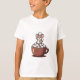 This delightful illustration showcases a cheerful grey mouse character donning a classic white chef's hat, perched playfully atop a mountain of fluffy marshmallows. The sweet rodent waves a friendly paw while balancing on the sweet treats floating in a large, glossy brown mug filled with rich hot chocolate. The scene radiates warmth and coziness, combining culinary charm with kawaii animal aesthetics.