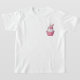 A sweet and whimsical cartoon illustration of a fluffy white bunny nestled inside a pink cupcake wrapper. The bunny wears glossy pink frosting like a hat, topped with colorful sprinkles, while its long ears peek out adorably from above. Soft pastel tones, smooth shading, and rounded shapes give the artwork a cute, dessert‑inspired fantasy look that feels cozy and playful against the dark background.