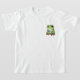 This heartwarming illustration showcases a chubby, smiling green frog tending to a miniature garden. The adorable amphibian is depicted holding a small blue watering can, carefully nurturing a variety of potted plants arranged at its feet. The botanical collection features a pink flower, a spiky cactus, leafy ferns, and cute succulents, all planted in classic terracotta pots. With its large, expressive eyes and rosy cheeks, this character design radiates a sense of joy and love for nature.